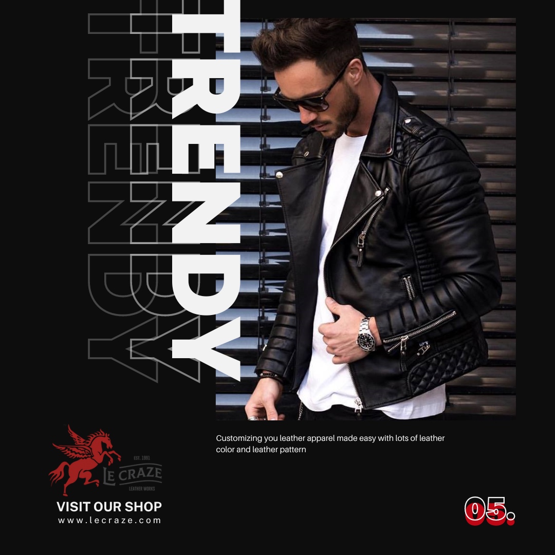 Follow us on Instagram to get latest update on upcoming trendy leather apparels and accessories.