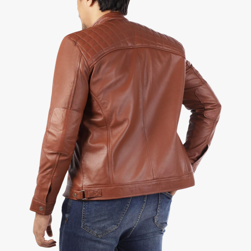 Mens Genuine Lambskin Dark Tan Casual Stylish Slim Fit Leather Jacket