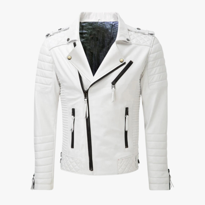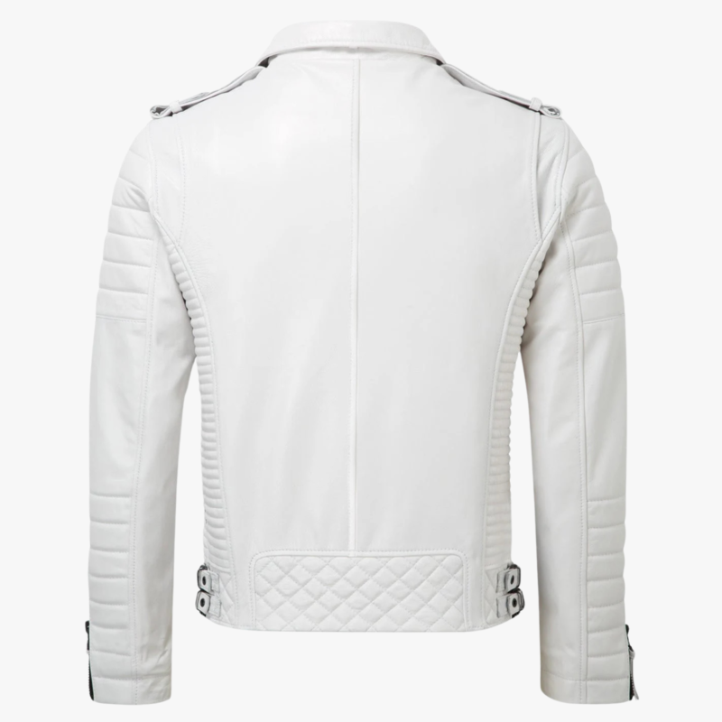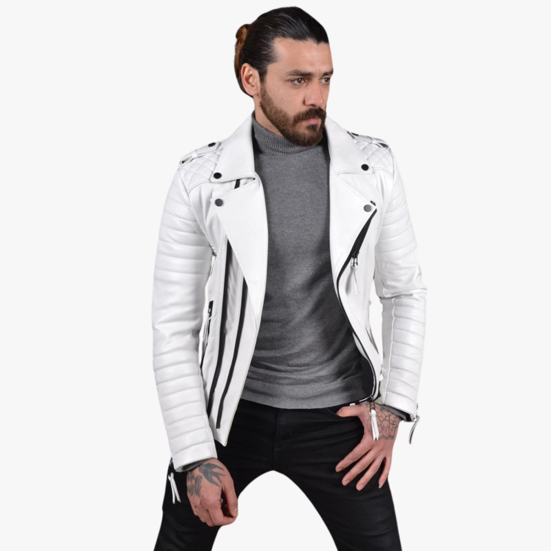 Real 100% Lambskin White Leather Jacket Luxury Modern Biker Casual Leather Jacket