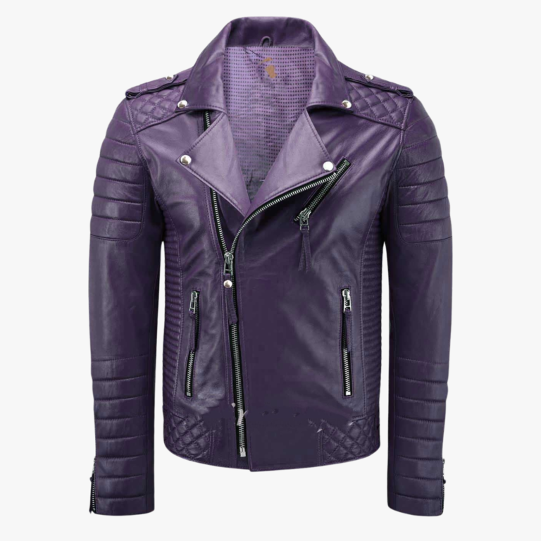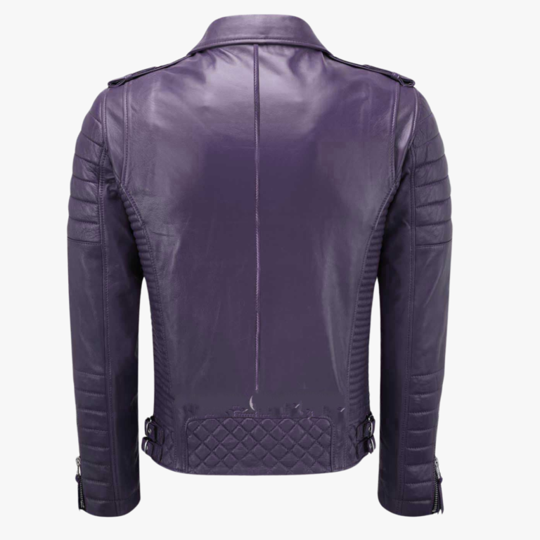 Mens 100% Lambskin Purple Leather Jacket Quilted Motorbiker Casual Leather Jacket