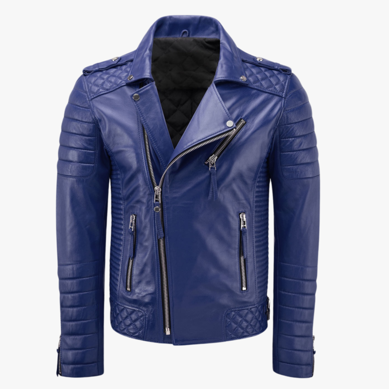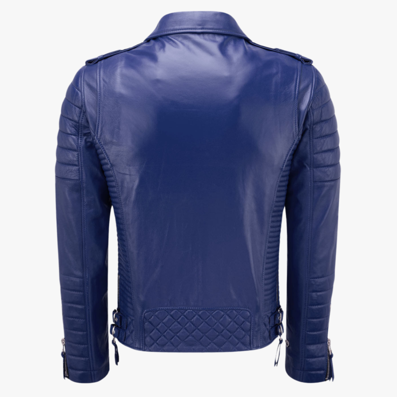 Lambskin Real Leather Jacket For Mens Handmade Blue Quilted Leather Jacket