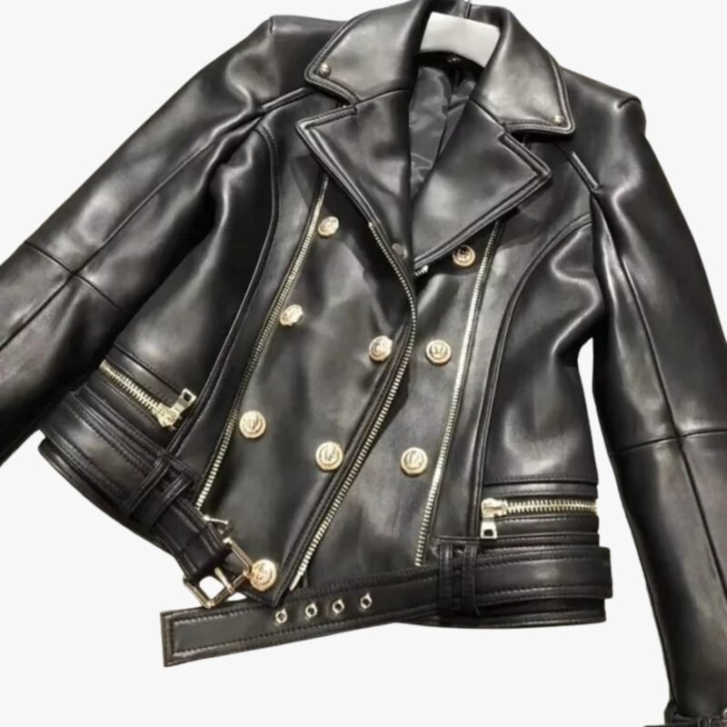 Handmade Women Black Lambskin Motorcycle Biker Leather Jacket With Stylish Button Designer Jacket