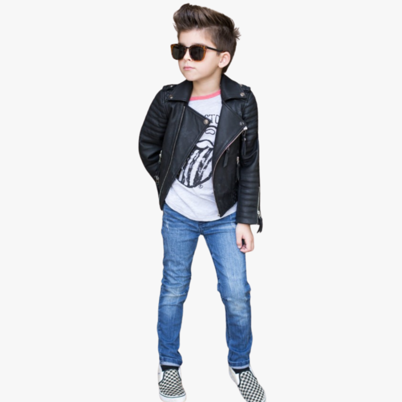 Kids Genuine Leather Jacket Quilted Leather Motorcycle Fashion Jacket