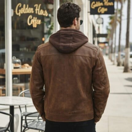 Handmade Slim Fit Brown Leather Jacket with Hood – Men’s Motorcycle Biker Coat