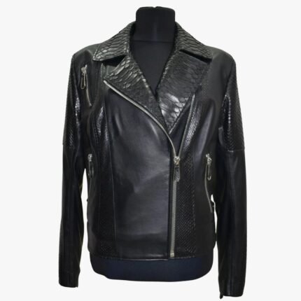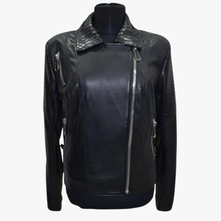Women Genuine Black Lambskin Crocodile Print Leather Jacket Motorcycle Biker Slim Fit Leather Jacket
