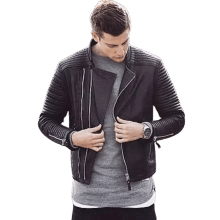 Mens Genuine Sleeve Quilted Leather Motorcycle Fashion Jacket