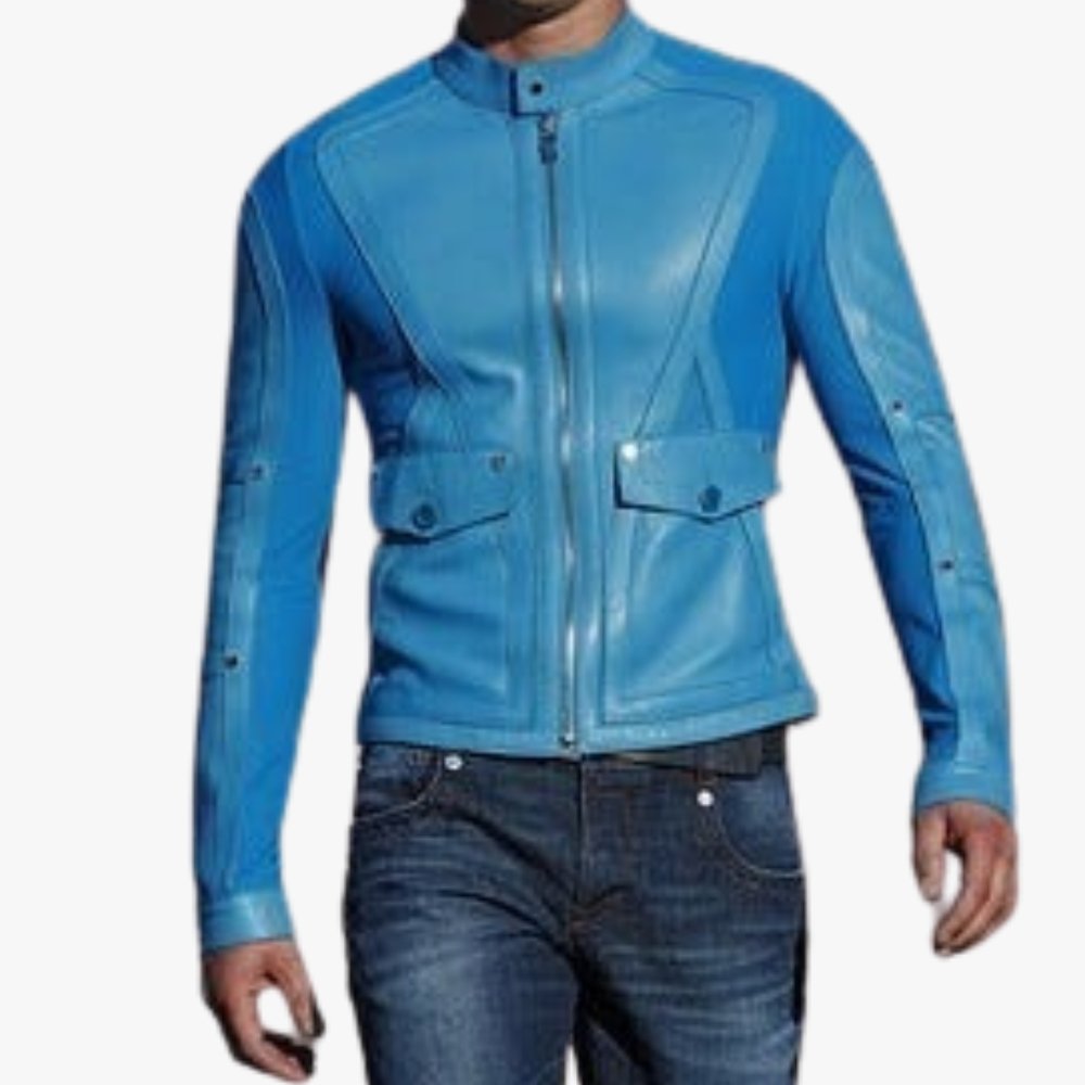 Genuine Leather Sky Blue Suede with Lambskin Leather Jacket