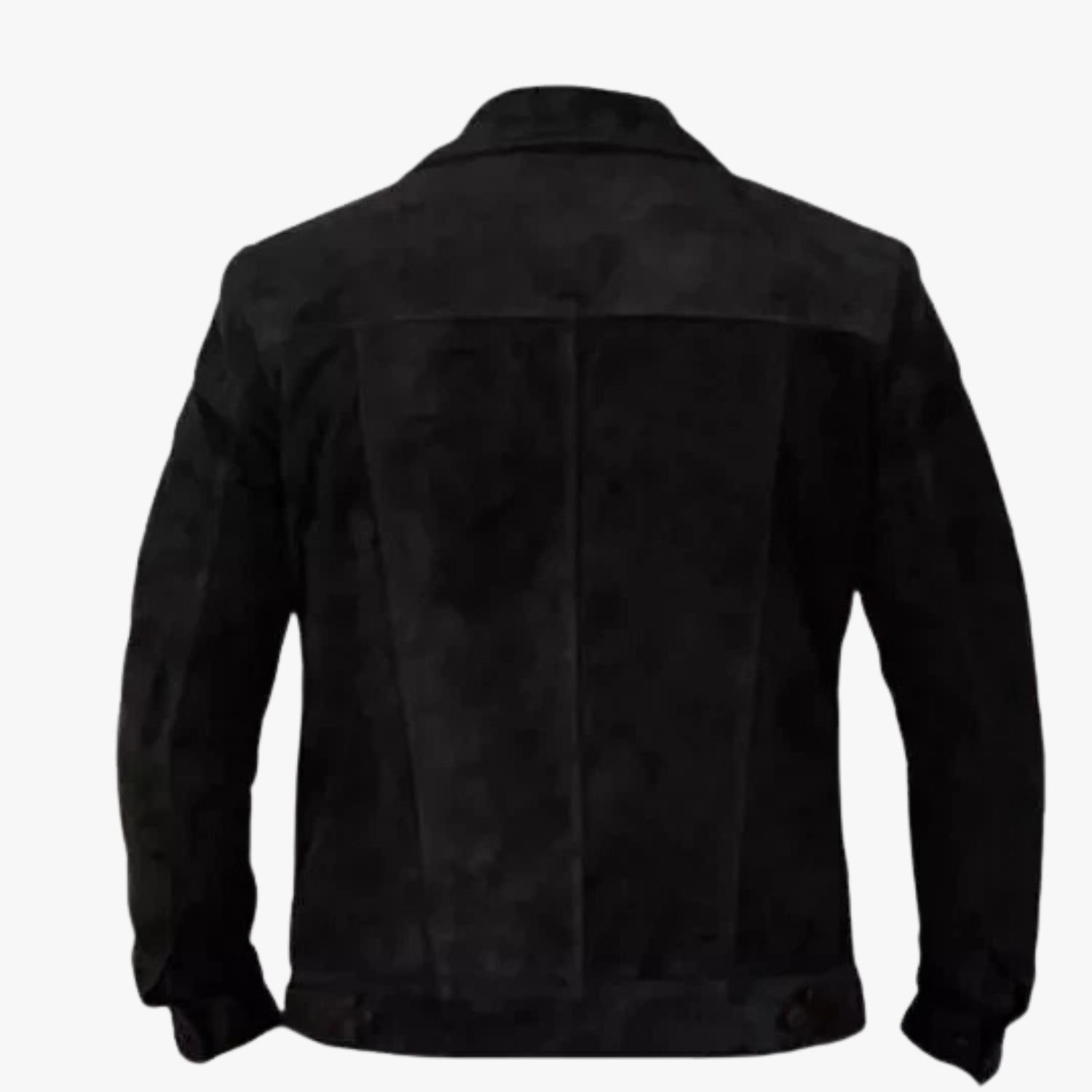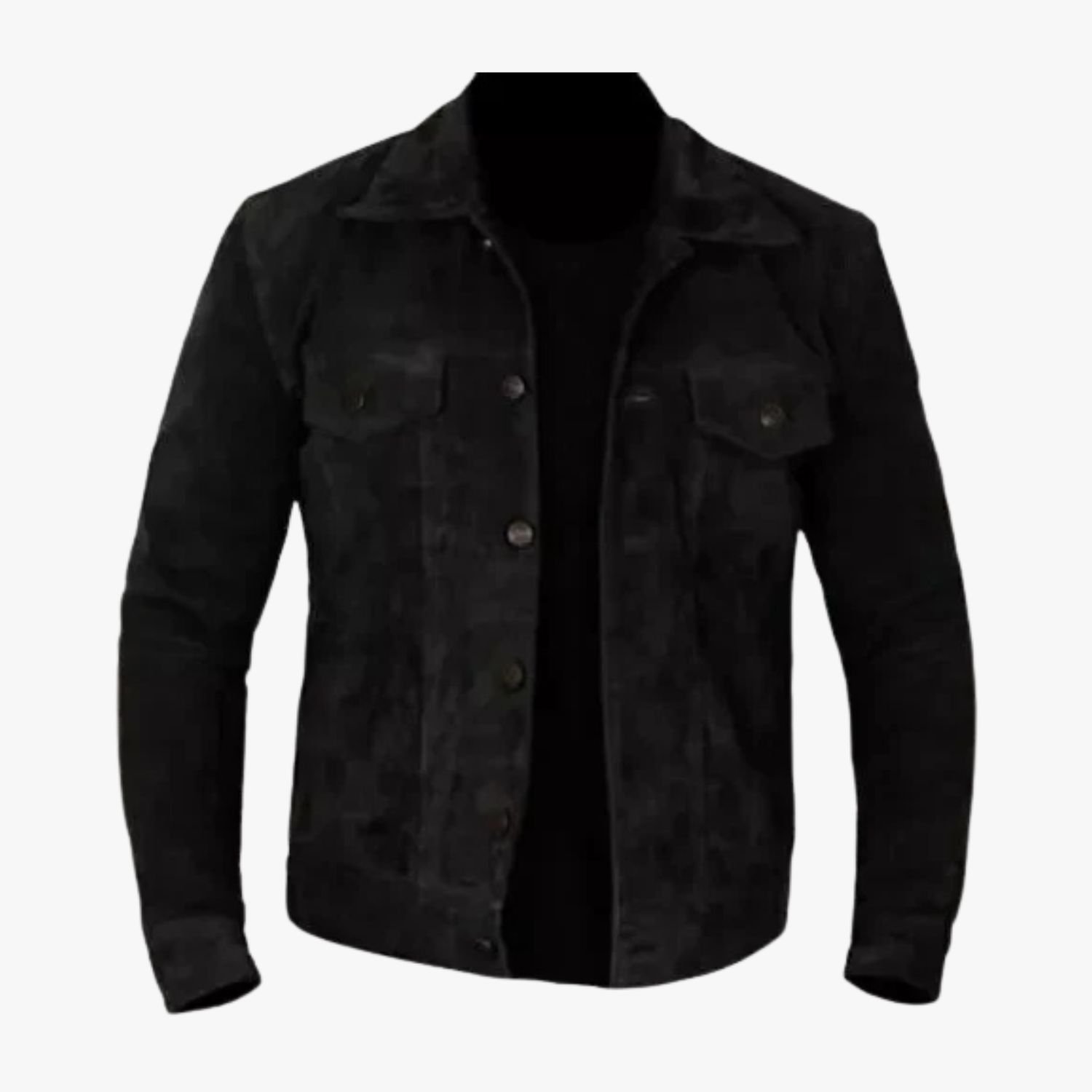 Handmade Men Black Suede Trucker Leather Shirt Denim Style Jacket Cowboy Biker Jacket
