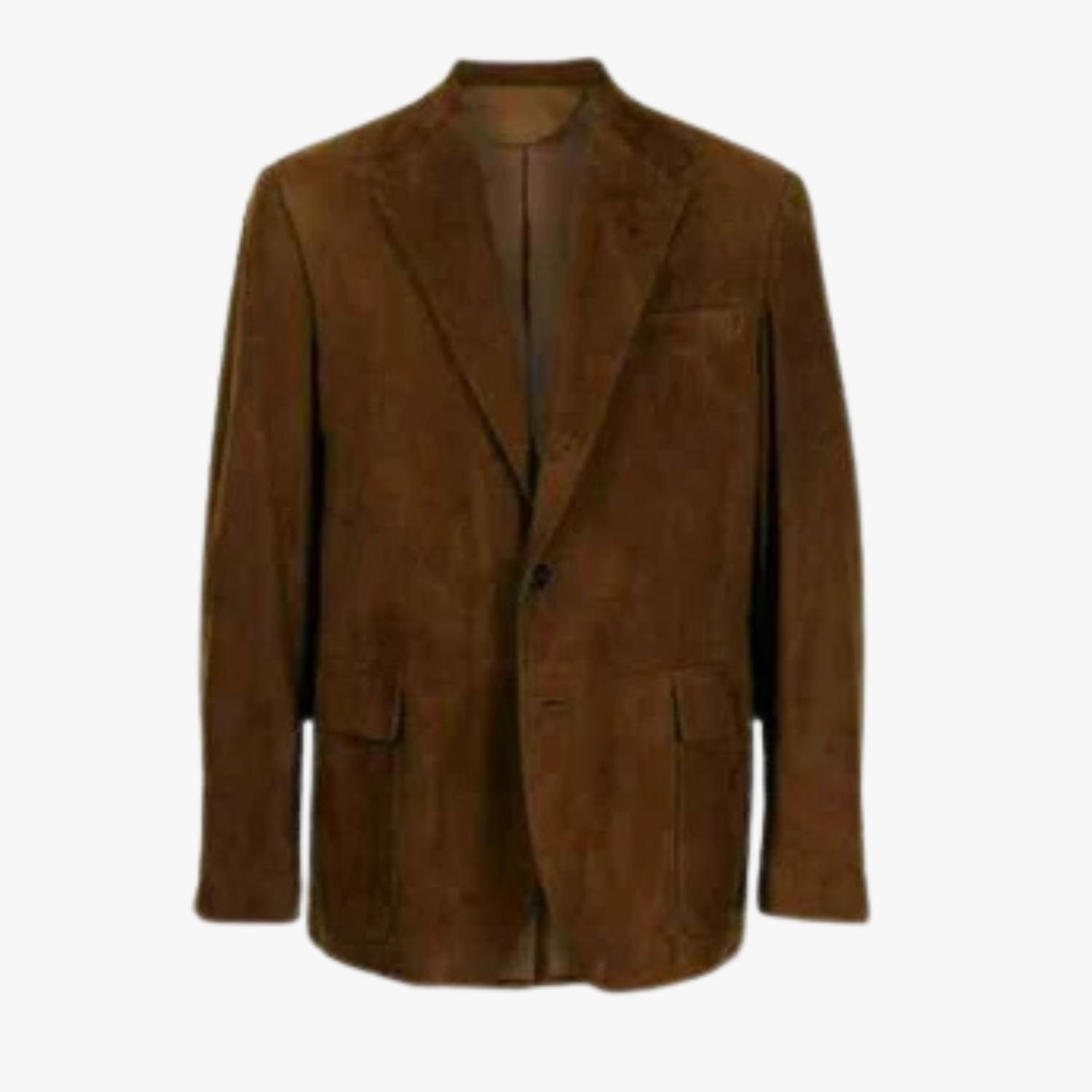 Men Genuine Lambskin Dark Brown Suede Formal Leather Blazer Coat